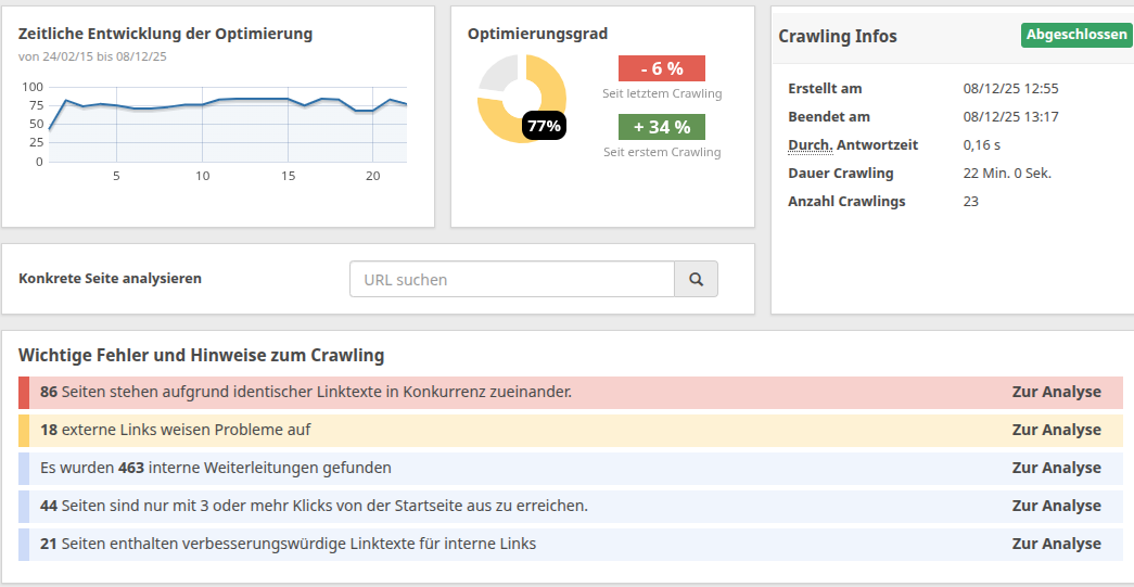 - Regelmäßiges Ranking- bzw. Keyword-Monitoring.